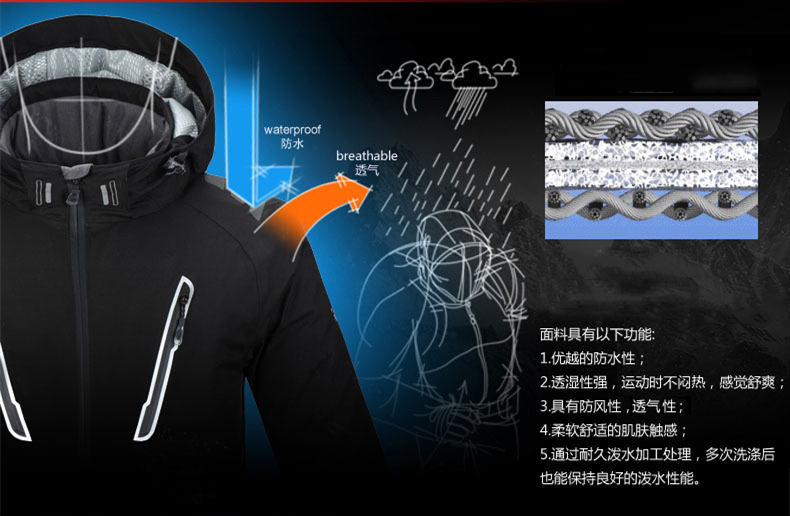包括表面抗?jié)裥浴㈧o水壓力(包括織物靜水壓力和織物接縫處的靜水壓力)、透濕性等指標(biāo)。