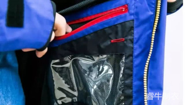 基于沖鋒衣簡潔的要求,它的兜袋一般很少。對于滑雪服來說就不同了,為了讓滑雪者收存更多東西,比如滑雪鏡、手套、手機之類的個人用品,滑雪服安排的兜袋很多,而且開口也很大,因為滑雪者需要帶著手套取放物品。開口處一般使用拉鏈密封,防止在劇烈運動時物品的丟失,需要特別注意的是:滑雪服的小口袋很多,材料柔軟的是為了存放手機和滑雪鏡,質(zhì)地透明的是用來存放滑雪時間卡,這些細節(jié)都是服裝設(shè)計人員充分考慮到使用者的實際需求后所設(shè)計的。