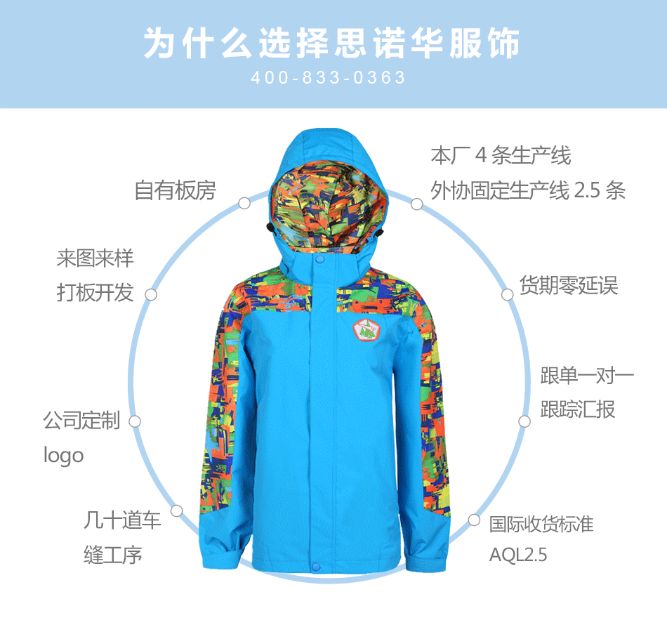 校服沖鋒衣定制 自有板房,來圖來樣定制